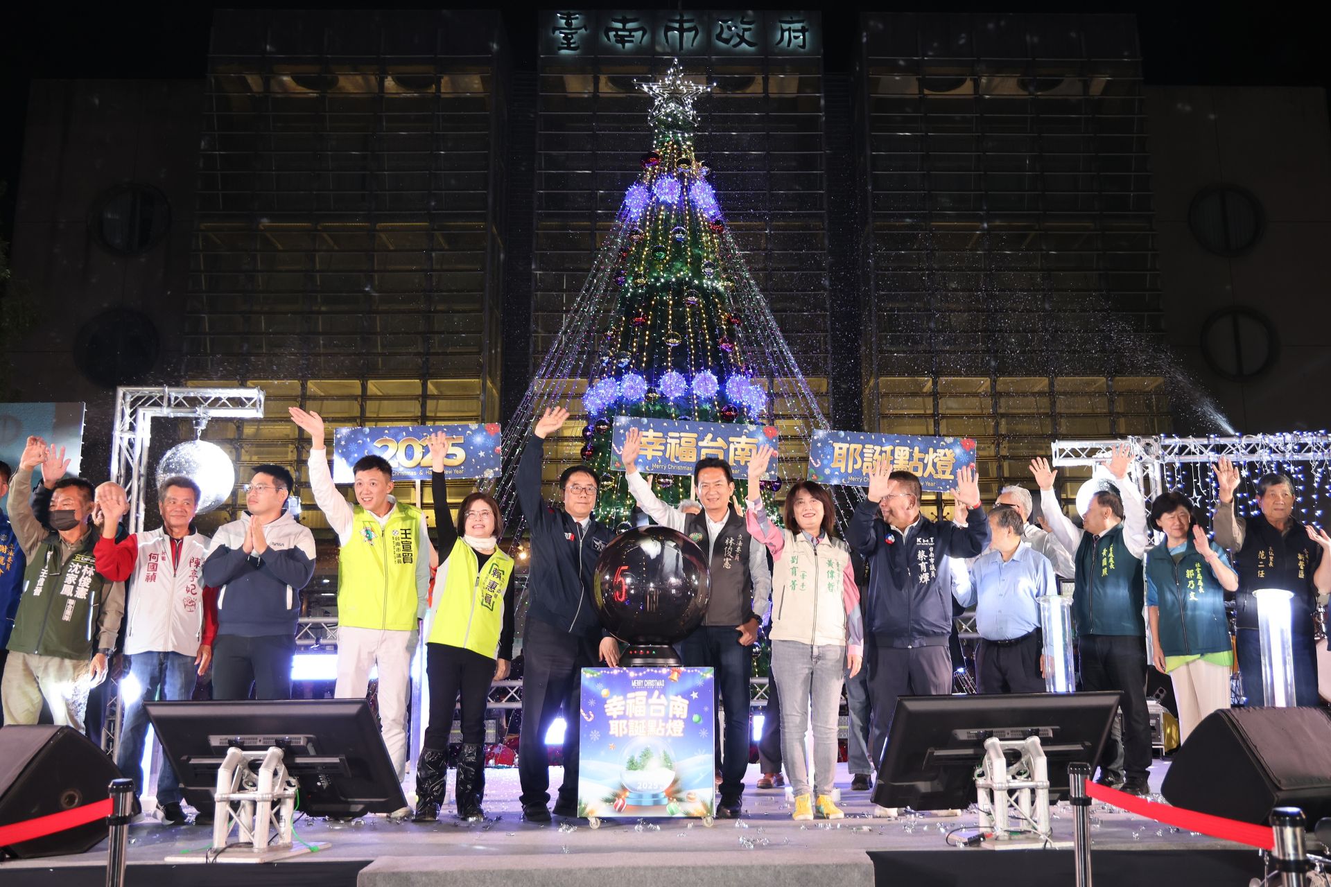 ▲台南市長黃偉哲與多位貴賓共同點亮耶誕樹,宣告耶誕節即將來臨。(新聞處 提供)