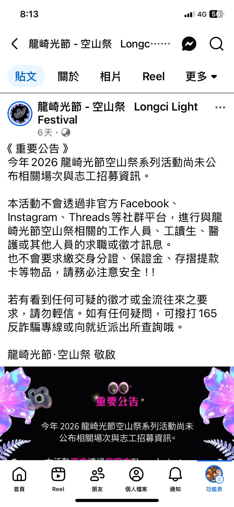 文化局長黃雅玲表示,12月底即將登場的龍崎光節空山祭及明年2月登場的月津港燈節,因活動多年來廣受民眾喜愛,已打出知名活動品牌,竟讓詐騙集團認為有機可趁,以徵求燈節志工、工讀生、醫護等人員的名義,在社群平台Facebook、Threads、Instagram上張貼連結,引誘民眾填具個人資料,文化局澄清並無對外進行徵才,提醒民眾提高警覺、避免受騙。