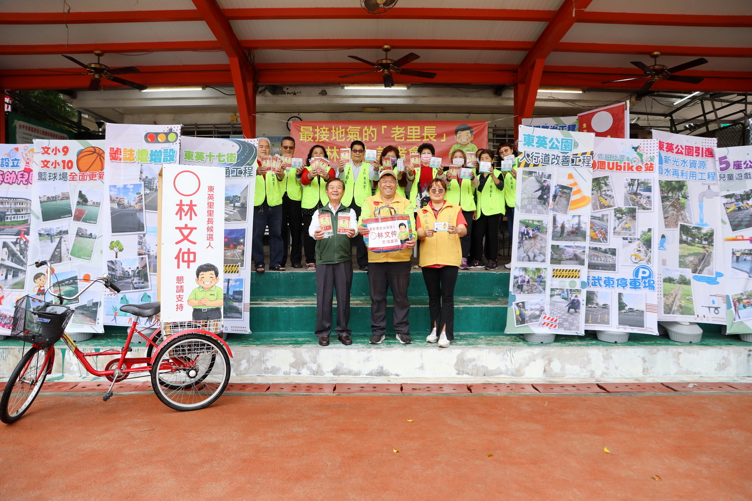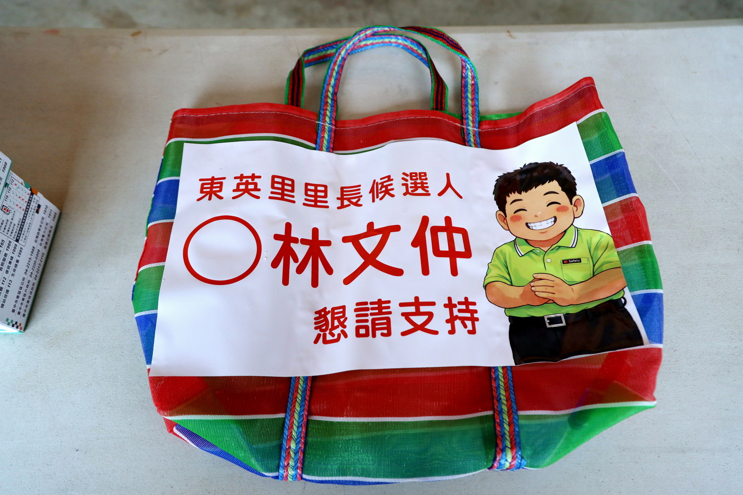 除了紮實政績,林文仲的「行動環保選舉文宣」也再次引發話題。延續以往備受好評的傳統,他這次同樣不靠大型看板擾民,而是騎著創意三輪車、揹著宣傳背包走入鄰里。這次更準備了復古感十足且實用的「紅藍綠茄芷袋」,以及深受長輩歡迎的一條根保健貼布。這種「看得到、找得到、拿得到」的宣傳方式,讓里民大讚既環保又貼心。