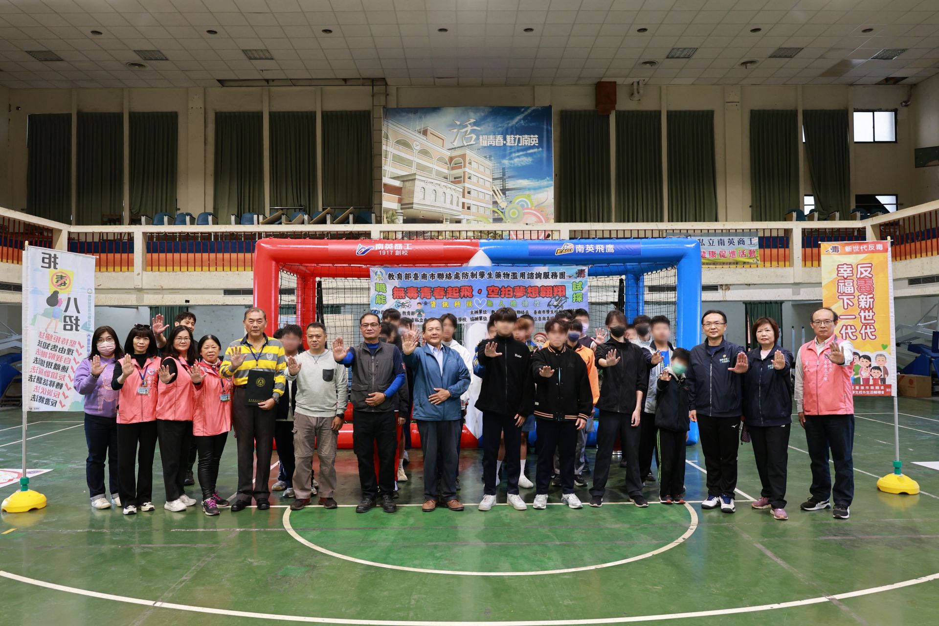 教育部臺南市聯絡處為落實「新世代反毒策略行動綱領」,建構校園堅實的防毒陣線,於3月11日假南英商工舉辦「職能試探-資訊科技無人機操控」活動。本次活動借重南英商工多媒體動畫科無人機師資及專業訓場,以突破傳統教條式宣導,創新導入國際流行的「無人機足球」競賽,透過高強度的科技競技,協助學生建立自我價值,進而從源頭防制藥物濫用,本次活動人數師、生、教官(學創人員)及春暉志工共7校50餘人參與。