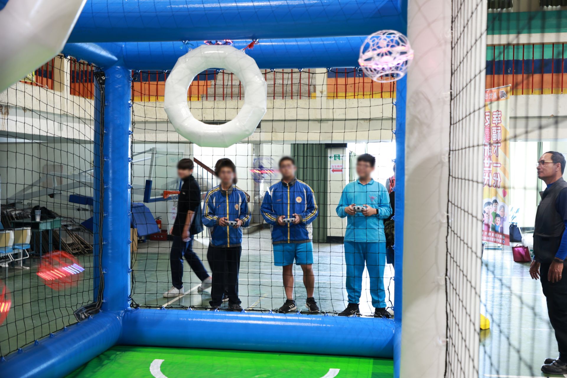 此次活動亮點在於「無人機足球競賽」。學生將操控包覆著球型護罩的無人機足球,在空中賽場內展開激烈的進攻與防禦。這不僅是技術的對抗,更是腦力的角逐,操控者需在高速飛行中精準掌握位移、速度與射門時機。